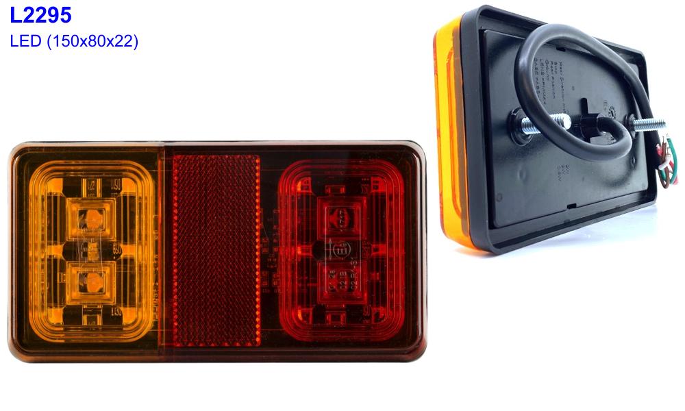 L1963 2.55 LED banán hátsólámpa 5 funkcióvalTermékinformáció: LED "banán" fantázianevű 5 funkciós hátsólámpa (3 alapfunkció +köd- és tolatólámpa). 200 cm vezetékkel szerelve. Különlegessége, hogy 4 különböző pozícióban van engedélyezve a felszerelhetősége a bal és jobb oldali lámpa kombinálásával a képen látható vázlatoknak megfelelően. Működtető feszültség: 12V - 24V. Mérete (szélesség x magasság x mélység): 269 x 109 x 48 mm.