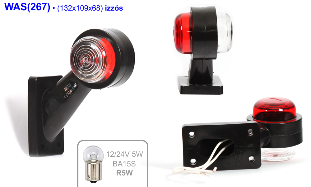 (507BC) 7.14 LED Live élőfényes 45°-os gumiszarvTermékinformáció: LED-es 45°-os rövid gumiszarv szélességjelző előre fehér, hátra piros fénnyel, 9db LED-ből álló LED Live élőfényes szegmenses világítófelülettel, gyárilag vezetékelőkészítéssel. Különlegessége, hogy a lyukas, tóruszfelületből álló búra rendkívül jól áll ellen a felpattanó kavicsoknak is, a forgó fény pedig valljuk be, elég látványos. Ajánljuk reprezentatív jellegű járművek hátsó sarokpontjain elhelyezve a szélső pontok jelzőfénnyel való ellátására. Természetesen ez a lámpa is rendelkezik E jellel, de a gyártó a közúti ellenőrzéseken a felhasználók hatósági zaklatásáról kapott visszajelzések hatására visszavonta a LED Live termékeket a gyártmánypalettáról. Ezt az érdekes lámpát csak a raktárkészlet rendelkezésre állásáig tudjuk forgalmazni. Mérete (kinyúlás oldalfalról x magasság x mélység): 108 x 135 x 49mm. Működtető feszültség: 12V vagy 24V.